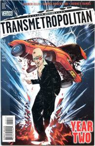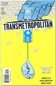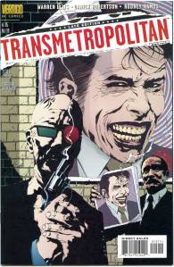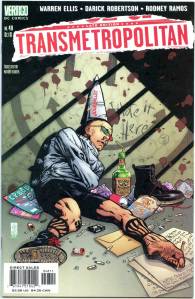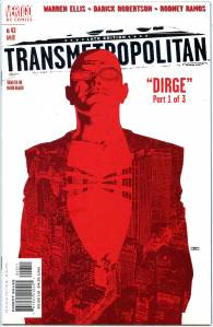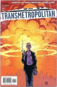 Transmetropolitan is a cyberpunk transhumanist comic book series written by Warren Ellis and co-created and designed by Darick Robertson; it was published by the American company DC Comics in 1997–2002. The series was originally part of the short-lived DC Comics imprint Helix, but upon the end of the book’s first year the series was moved to the Vertigo imprint after DC Comics shut down their Helix imprint. Transmetropolitan chronicles the battles of Spider Jerusalem, infamous renegade gonzo journalist of the future.