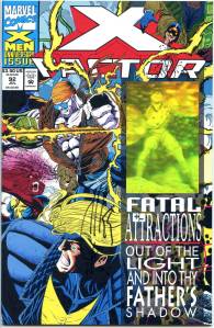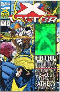 In the last major storyline of the first X-Factor series, published in early 1991, Apocalypse kidnaps Nathan Summers, sensing that he would grow up to be a powerful mutant and possible threat. X-Factor rescue Nathan from Apocalypse’s lunar base, but find him infected with a “techno-organic” virus that cannot be treated. A clan of rebels from the future, known as the Askani, send a representative to the present time to bring Nathan 2,000 years into the future to be treated. Fully grown, he returns to the 20th century as the antihero, Cable.