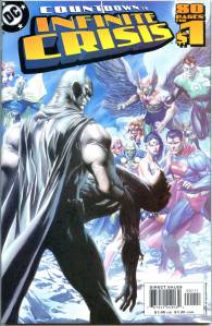The series storyline was a sequel to DC’s 1985 limited series Crisis on Infinite Earths, which “rebooted” much of the DC continuity in an effort to fix 50 years of contradictory character history. It revisited characters and concepts from that earlier Crisis, including the existence of DC’s Multiverse. Some of the characters featured were alternate versions of comic icons such as an alternate Superman named Kal-L, who came from a parallel universe called Earth-Two. A major theme was the nature of heroism, contrasting the often dark and conflicted modern-day heroes with memories of “lighter” and ostensibly more noble and collegial heroes of American comic books’ earlier days.