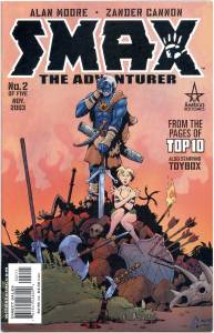 The story deals with Smax and Toybox returning, via magical teleportation, to Jeff’s magically enchanted homeworld. Smax, now a city dweller, seems embarrassed by his unsophisticated, sword-and-sorcery roots. They attend Smax’s uncle’s funeral where Jeff introduces Robyn as his wife, though no such relationship exists. At this point Jeff’s sister Rexa Macksun is introduced, dressed in the typical garb of a female fantasy barbarian such as Red Sonja and just as tall and physically impressive as her brother with the same blue skin and white hair.