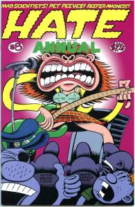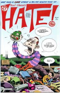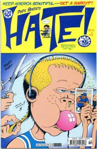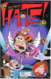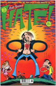 Hate is a comic book by writer-artist Peter Bagge. First published by Fantagraphics in 1990 it ran for 30 issues, and was one of the best-selling alternative comics of the 1990s, at its height selling 30,000 copies an issue. In 2000 Bagge revived the series in Hate Annual, a yearly comic that continues the story after Hate in short stories, and includes writings on libertarianism, culture, and topical cartoons.