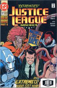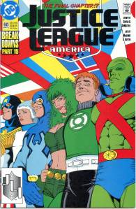 The 1986 company-wide crossover “Legends” concluded with the formation of a new Justice League. The new team was dubbed “Justice League” then “Justice League International” (JLI) and was given a mandate with less of an American focus. The new series, written by Keith Giffen and J. M. DeMatteis with art by Kevin Maguire (and later Adam Hughes), added quirky humor to the team’s stories. In this incarnation, the membership consisted partly of heroes from Earths that, prior to their merging in the Crisis on Infinite Earths, were separate. The Giffen/DeMatteis team worked on Justice League for five years and closed out their run with the “Breakdowns” storyline in 1991 and 1992. The series’ humorous tone and high level of characterization proved very popular.