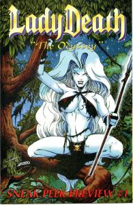 Lady Death, once the ruler of Hell falls prey to a band of barbaric pirates when the goddess Vandala sends her on an odyssey into the unknown, where her powers are at their weakest. Vandala forces Lady Death into acts of heroism, such as defeating the evil angel Agony, and the murderous siblings, Macabre and Malady. Meanwhile, Lucifer attempts to regain the throne of Hell by resurrecting his mighty warrior, Asteroth, and sending him on Lady Death’s trail.