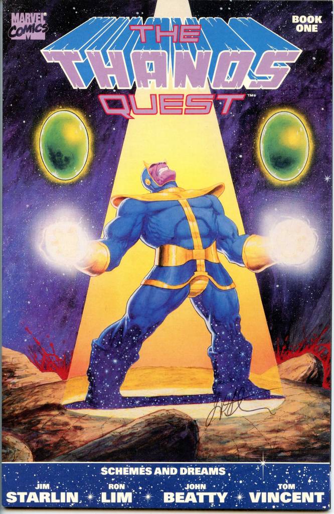 Recently resurrected by Death in order to wipe out half of the population of the universe, the Titan Thanos discovers the true nature of the six Infinity Gems after gazing into Death’s Infinity Well. Convincing Death that possession of the gems will aid him tremendously in his quest, he gains her permission to seek them out from the cosmic entities that currently possess them.