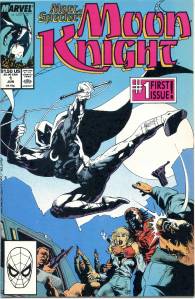In 1989, a third Moon Knight volume, titled Marc Spector: Moon Knight was published. It was the longest-running series, lasting sixty issues. This volume introduces Moon Knight’s teenage sidekick Jeff Wilde, also known as “Midnight,” the son of Midnight Man, a villain from the first volume of the series. At this time, Moon Knight first encounters the Black Cat. Turned into a cyborg by the Secret Empire, Midnight is seemingly killed in the “Round Robin” story arc of Amazing Spider-Man, spanning issues #353-#358.