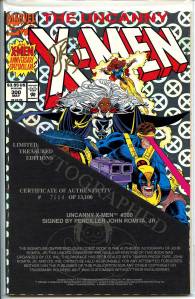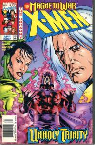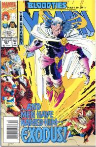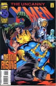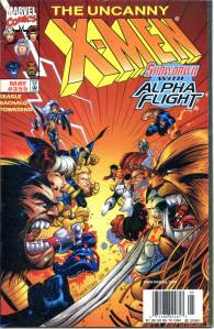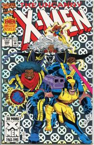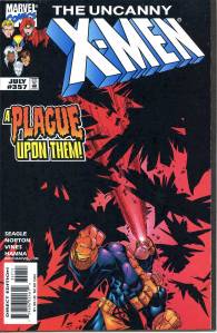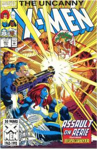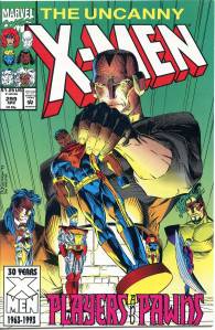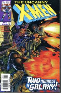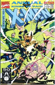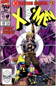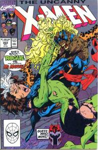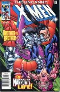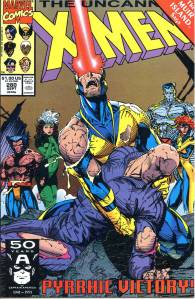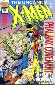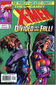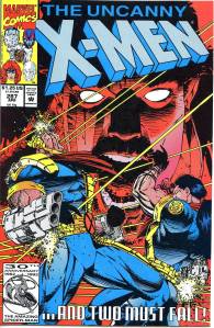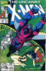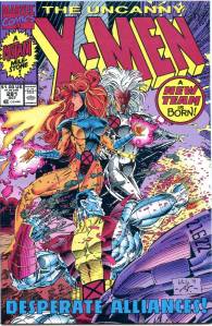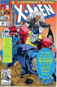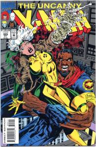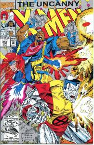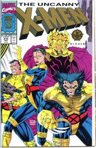 After Claremont’s run, the X-Men were divided into two color-coded squads, with a Blue team headlining the adjectiveless X-Men title, while the Gold team, consisting of Archangel, Colossus, Jean Grey, Iceman and Storm, appeared in Uncanny. This roster was later joined by Bishop, another refugee from the future. After Claremont’s departure, Jim Lee continued as plotter, while John Byrne scripted from #281 to #286. Byrne was replaced as scripter from #286 by Scott Lobdell, who was fully credited as writer from #289. The “X-Cutioner’s Song” crossover was released in the fall of 1992 and resulted in the outbreak of the Legacy virus, a mutant-specific plague which continued as a story element in X-Men comics until 2001.
