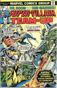 The first series started in 1975 with two giant-size issues before starting as a regular series, and was mostly bi-monthly during its existence. It initially teamed up Doctor Doom and the Sub-Mariner, who had lost his own series, from which it picked up the unresolved plots, especially that of the comatose Atlanteans. After a succession of writers and artists and a crossover with The Avengers, the plot gets resolved in issue #13 when Dr. Doom revives the Atlanteans, thus dissolving his alliance with the Sub-Mariner.