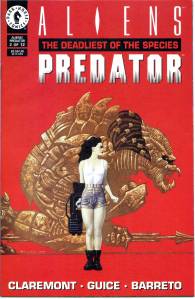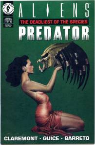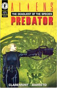 The Story takes place in the futuristic Alien vs. Predator universe, where Earth has been overrun by Aliens, and the social elite have taken refuge in gigantic skyliners. Caryn Delacroix is the protagonist, with an unclear past regarding both the Aliens and Predators throughout most of the comic. An artificial intelligence serves as the primary antagonist, while the Xenomorphs and the Predator are many times in cooperation with Delacroix and her companions for parts of the series, in particular a Predator called “Big Mama”.