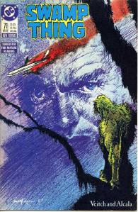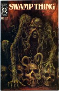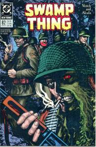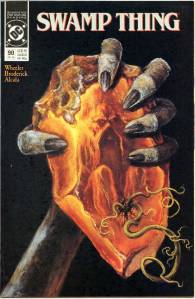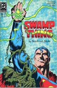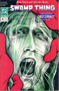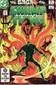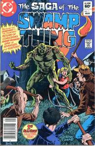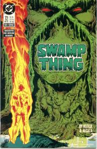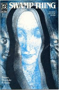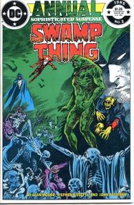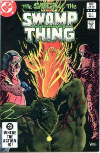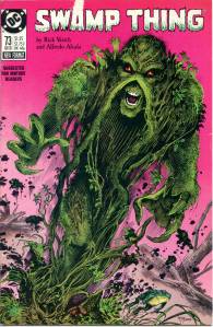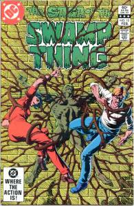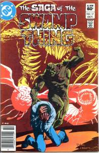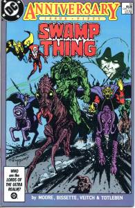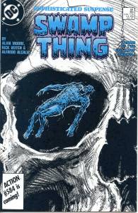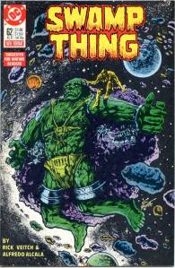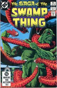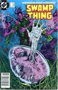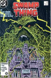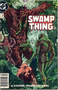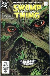 In 1984, editor Len Wein assigned Swamp Thing to British writer Alan Moore. When Karen Berger took over as editor, she gave Moore free rein to revamp the title and the character as he saw fit. Moore reconfigured Swamp Thing’s origin to make him a true monster as opposed to a human transformed into a monster. In his first issue, he swept aside most of the supporting cast Pasko had introduced in his year-and-a-half run as writer, and brought the Sunderland Corporation to the forefront, as they hunted Swamp Thing and “killed” him in a hail of bullets. The subsequent investigation revealed that Swamp Thing was not Alec Holland’s consciousness transformed into a plant but actually a form of plant life that had absorbed Holland’s consciousness after exposure to his work, with Swamp Thing’s appearance being the plants’ attempt to duplicate Holland’s human form.