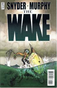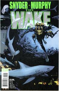 Scott Snyder began writing The Wake in May 2013, a 10-issue, ocean-based horror miniseries drawn by Snyder’s American Vampire: Survival Of The Fittest collaborator Sean Murphy. The series follows marine biologist Lee Archer, who along with the Department of Homeland Security, discovers a potential threat to humanity that may involve strange, humanoid creatures that inhabit the ocean depths. The story shifts between three time periods: the near future, two centuries in the future and the distant past. The covers of the first five issues form a mural when placed side by side.