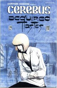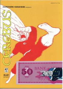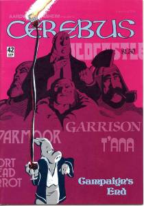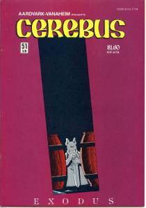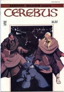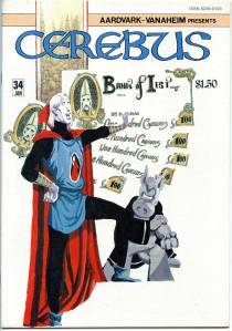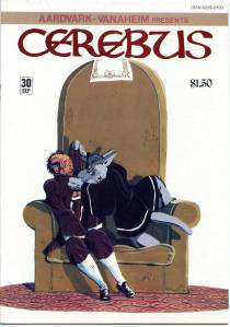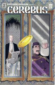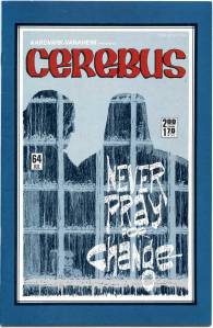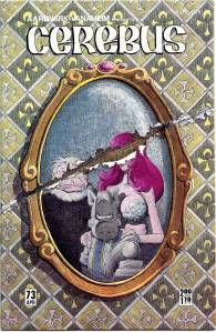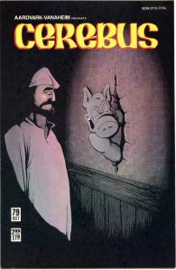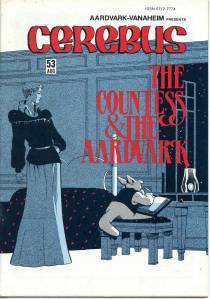 Cerebus the Aardvarkis a series created by Canadian cartoonist Dave Sim, which ran from December 1977 until March 2004. The title character of the 300-issue series was an anthropomorphic aardvark who takes on a number of roles throughout the series—barbarian, prime minister and Pope among them. The series stands out for its experimentation in form and content, and for the dexterity of its artwork, especially after background artist Gerhard joined in with the 65th issue. As the series progressed, it increasingly became a platform for Sim’s controversial beliefs.