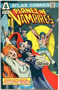 In the far-off era of 2010 AD, astronauts return from space to find Earth ruled by technological geniuses who live on human blood. They join the primitive resistance fighters who dwell outside the domed cities. Part of the short-lived Atlas science fiction line from former Marvel publisher Martin Goodman.