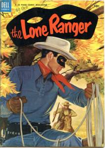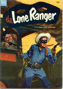 Tonto got his own spin-off title in 1951, which lasted 31 issues. Such was the Ranger’s popularity at the time that even his horse Silver had a comic book, The Lone Ranger’s Famous Horse Hi-Yo Silver, starting in 1952 and running 34 issues; writer Gaylord DuBois wrote and developed Silver as a hero in his own right. In addition, Dell also published three big Lone Ranger annuals, as well as an adaptation of the 1956 theatrical film.