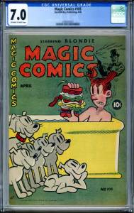Magic Comics was published by David McKay Company from 1939 to 1949. The series was a compilation of newspaper strip reprints such as “Mandrake the Magician“, “Inspector Wade”, “Henry”, “Jan and Aloysius”, “Popeye”, “Secret Agent X-9”, “The Lone Ranger” and “Blondie”.