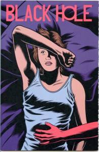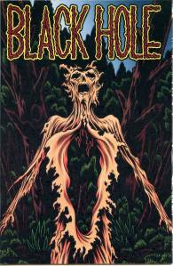 Black Hole written and drawn by Charles Burns was published as a 12-issue comic book limited series between 1995 and 2005. The first four issues were released by Kitchen Sink Press, before the publisher went out of business. Fantagraphics republished the first four issues and the remaining eight.
