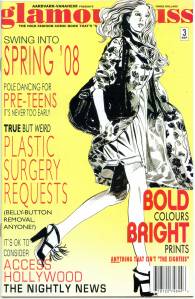 Glamourpuss is a Canadian independent comic book written and illustrated by Dave Sim which was published from April 2008 to July 2012 and ran for 26 issues. The comic was published bimonthly, with 24 pages of story and art, and back issues remaining available throughout the comic’s print run. The premise of the book is threefold: a parody of fashion magazines, a history of photorealism in comics, and a surreal super-heroine comic.