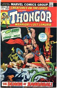 Effinger continued as writer for the series that immediately followed, in issue #22 (March 1973): “Thongor! Warrior of Lost Lemuria!”, adapting asword-and-sorcery barbarian character created by author Lin Carter. Following writers Tony Isabella and Gardner Fox, Carter himself co-wrote (with Steve Gerber) the final two installments.