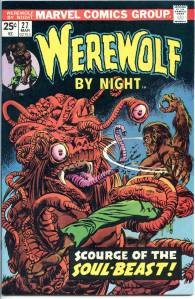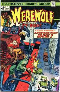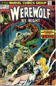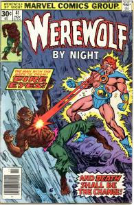 The Werewolf by Night character first appeared in Marvel Spotlight #2 (Feb. 1972) and was based on an idea by Roy Thomas. The series name was suggested by Stan Lee and the debut story was crafted by Gerry Conway and Mike Ploog. The character made additional appearances in Marvel Spotlight #3 and #4 and then graduated to his own eponymous series in September 1972. Werewolf by Night was published for 43 issues and ran through March 1977. Issue #32 contains the first appearance of Moon Knight. Jack Russell co-starred with Tigra in Giant Size Creatures #1 (July 1974), which was the first appearance of Greer Grant as Tigra instead of the Cat.That series was retitled Giant-Size Werewolf with its second issue.