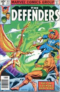 A second Man-Thing series ran 11 issues (Nov. 1979 – Jan. 1981). Writer Michael Fleisher and penciller Mooney teamed for the first three issues, with the letters page of #3 noting that Fleisher’s work had received a great deal of negative criticism and that he had been taken off the book. He was succeeded by, primarily, writer Chris Claremont and illustrators Don Perlin (breakdowns) and Bob Wiacek (finished pencils). Claremont’s stories introduced the Man-Thing and Jennifer Kale to Doctor Strange (whose series he was concurrently writing), after which his material focused on two new supporting characters: John Daltry, Citrusville’s new sheriff, and Bobbie Bannister, a formerly wealthy girl who is the only survivor when her parents’ yacht is attacked. These characters’ stories he resolved by tying them to a resolution for his own War Is Hell series.