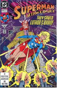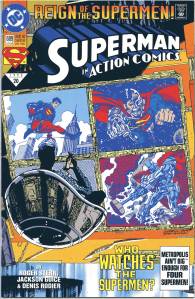As writer of the series, Stern contributed to such storylines as “Panic in the Sky” and “The Death of Superman“. He created the Eradicator in Action Comics Annual #2 and later incorporated the character into the “Reign of the Supermen” story arc beginning in The Adventures of Superman#500. The Eradicator then took over Action Comics as “the Last Son of Krypton” in issue #687 (June 1993).