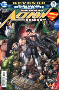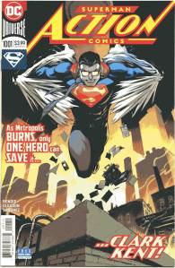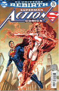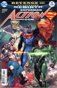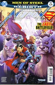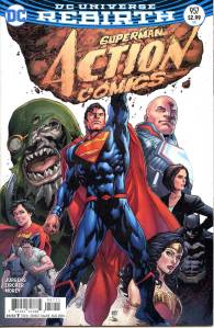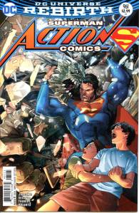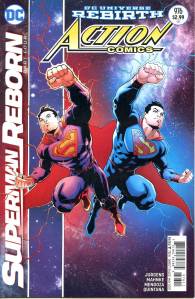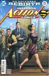 As part of DC Comics’ DC Rebirth relaunch in June 2016, Action Comics reverted to its original numbering beginning with Action Comics #957, with the series shipping twice-monthly. The series, written by Dan Jurgens, serves as a continuation of the comic book series, Superman: Lois and Clark, which featured the pre-Flashpoint Superman alongside his wife, Lois Lane, and their son, Jonathan Kent.