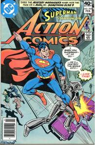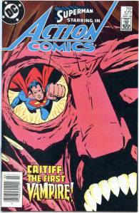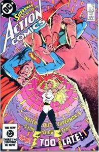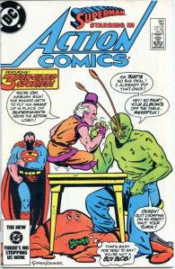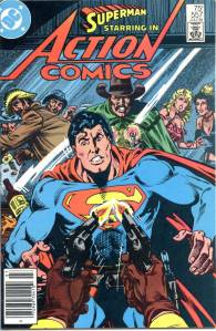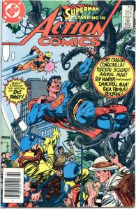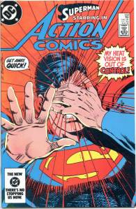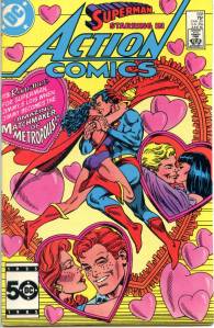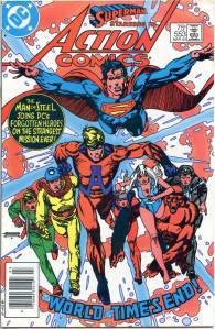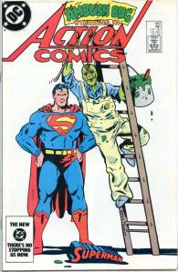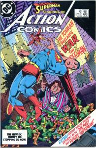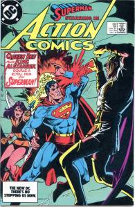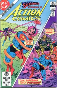 The superheroine Vixen made her first appearance in Action Comics #521 (July 1981). To mark the 45th anniversary of the series, Lex Luthor and Brainiac were both given an updated appearance in issue #544 (June 1983). Lex Luthor dons his war suit for the first time in the story “Luthor Unleashed!” and Brainiac’s appearance changes from the familiar green-skinned android to the metal skeletal-like robot in the story “Rebirth!”. Schwartz ended his run as editor of the series with issue #583 (September 1986) which featured the second part of the “Whatever Happened to the Man of Tomorrow?” story by Alan Moore and Curt Swan.