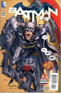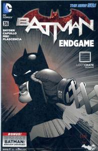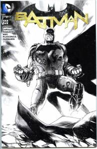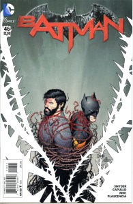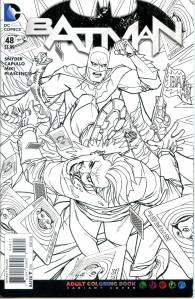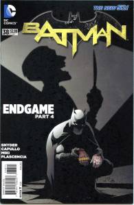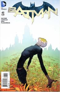 Since the beginning of The New 52, Scott Snyder has been the writer of the flagship Batman title. His first major story arc was “Night of the Owls“, where Batman confronts the Court of Owls, a secret society that has controlled Gotham for centuries. The second story arc was “Death of the Family“, where the Joker returns to Gotham and simultaneously attacks each member of the Batman family. The third story arc was “Batman: Zero Year“, which redefined Batman’s origin in The New 52. It followed Batman #0, published in June 2012, which explored the character’s early years. The final storyline before the Convergence (2015) event was Endgame, depicting the supposed final battle between Batman and the Joker when he unleashes the deadly Endgame virus onto Gotham City. The storyline ends with Batman and the Joker’s supposed deaths. Starting with #41, Commissioner James Gordon takes over Bruce’s mantle as a new, state-sanctioned, mecha Batman, debuting in the Free Comic Book Day special comic Divergence. However, Bruce Wayne is soon revealed to be alive, albeit now suffering almost total amnesia of his life as Batman and only remembering his life as Bruce Wayne through what he has learned from Alfred. Bruce Wayne finds happiness and proposes to his girlfriend, Julie, but Mr. Bloom heavily injures Jim Gordon and takes control of Gotham City and threatens to destroy the city by energizing a particle reactor to create a “strange star” to swallow the city. Bruce Wayne discovers the truth that he was Batman and after talking to a stranger who smiles a lot (it is heavily implied that this is the amnesic Joker) he forces Alfred to implant his memories as Batman, but at the cost of his memories as the reborn Bruce Wayne. He returns and helps Jim Gordon defeat Mr. Bloom and shut down the reactor. Gordon gets his job back as the commissioner, and the government Batman project is shuttered.