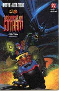 Judge Death makes a dimensional jump to Gotham City, murdering two lovers and a police officer. Batman defeats Death, who flees in spirit form. Among the remains of his host body, Batman finds a dimensional jump belt that he accidentally activates, transporting him to Mega-City One, where is confronted by Mean Machine Angel. As Mean Machine attacks Batman, they are both confronted by Judge Dredd. Mean Machine flees to Gotham using the belt, then wanders into the city looking for Judge Death.