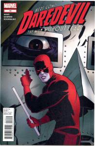 In July 2011, Daredevil relaunched with vol. 3, #1 (Sept. 2011), with writer Mark Waid. Waid focused on emphasizing the character’s powers and perception of the physical world. In the premiere issue, Murdock finds he can no longer serve as a trial lawyer due to past allegations of his being Daredevil causing a case he represents in court to turn into a media circus. Two issues later, Nelson and Murdock have developed a new business strategy of serving as consulting counselors, by teaching clients how to represent themselves in court.
