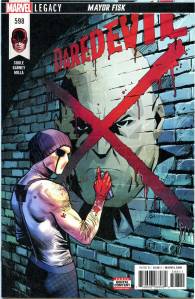 Following the release of Volume 5, Issue 28, much like with other Marvel series as part of the Marvel Legacy event, the Daredevil series official numbering was rebooted back to the original numbering which started with Issue 595 which was released on November 8, 2017, where Daredevil’s longtime nemesis the Kingpin became the Mayor of New York City and begins a campaign to make costumed vigilantes officially criminals. Although Murdock’s attempt to set up a sting operation results in his allies being arrested when the Kingpin turns this trap against him, Fisk’s legal manipulations work against him when he is attacked by the Hand, leaving Fisk in a coma and Murdock legally mayor of New York from his position as deputy mayor due to a loophole added by a prior administration that had not been amended, allowing Matt to take control of the city and release his fellow heroes to help him stop the Hand.