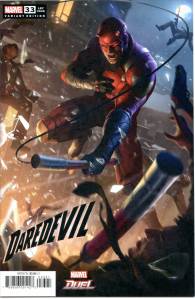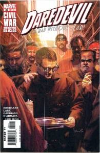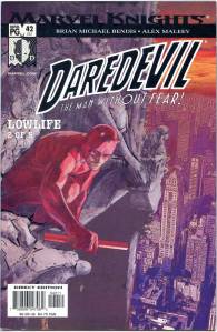 New writer D. G. Chichester and pencilerLee Weeks continued from where Nocenti left off, with Murdock resuming his friendship with Foggy Nelson, struggling to re-win the heart of Karen Page, appealing the revocation of his attorney’s license, and bonding more deeply than ever with Hell’s Kitchen. Chichester’s focus on Daredevil’s relationship with New York City went so far as to have two issues devoted entirely to Daredevil defending New Yorkers from ordinary criminals and even simple accidents. The critically acclaimed “Last Rites” arc from #297–300 saw Daredevil regaining his attorney’s license and finally bringing the Kingpin to justice.