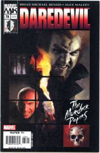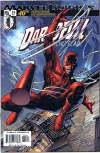 In 1998, Daredevil‘s numbering was rebooted, with the title “canceled” with issue #380 and revived a month later as part of the Marvel Knights imprint.Joe Quesada drew the new series, written by filmmaker Kevin Smith. Its first story arc, “Guardian Devil“, depicts Daredevil struggling to protect a child whom he is told could either be the Messiah or the Anti-Christ. Murdock experiences a crisis of faith exacerbated by the discovery that Karen Page has AIDS (later revealed to be a hoax) and her subsequent death at Bullseye‘s hands. When he discovers that the true party responsible for the scheme is Mysterio, who is currently dying of cancer, he leaves Mysterio to commit suicide, deciding to use the money Karen left him in her will to re-open Nelson & Murdock.