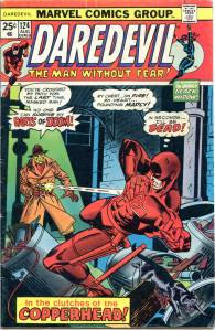 In a story arc overlapping Wolfman, Shooter, and McKenzie’s runs on the series, Daredevil reveals his identity to Heather Glenn and becomes partially responsible for the suicide of her father; their relationship would persist but would prove increasingly harmful to both of them. Though the Black Widow returned for a dozen issues (#155–166) and attempted to rekindle her romance with Daredevil, he ultimately rejects her in favor of Glenn.
