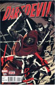 Daredevil V5 began as part of the All-New, All-Different Marvel branding, written by Charles Soule with art by Ron Garney with the first two issues released in December 2015. In this series, Matt returns to New York, where he now works as an Assistant District Attorney. He will have a redesigned costume and a new apprentice in Samuel Chung, an undocumented immigrant who has been living in New York’s Chinatown since he was a child, who has taken up the codename Blindspot. Flashbacks in a later story arc reveal how Matt regained his secret identity; when the Purple Children acquired a machine designed by their father to enhance his powers, after Matt had saved them from a mob, they used the machine to erase the world’s knowledge of Matt’s identity as Daredevil, Matt only allowing Foggy to know his secret identity afterwards, enabling him to be re-instated as a New York Attorney.] Using his restored secret identity, Murdock is able to take advantage of a subsequent court case to establish a precedent for superheroes testifying in court without the need to expose their secret identities. Despite interference from the Kingpin, Murdock succeeds in taking this precedent to the Supreme Court so that all superheroes will have the same rights in future cases, and afterwards returns to his traditional red costume.
