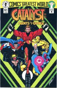 All Comics’ Greatest World titles took place in a shared universe. Most of the action centered on four cities in a slightly skewed version of America: Arcadia, Golden City, Steel Harbor, and the Cinnibar Flats area of Nevada, home of an interdimensional rift called the “Vortex”.