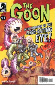 The Goon is written and drawn by Eric Powell. The series mixes both a comical and violent atmosphere with a supernatural slant, which pit the titular character against undead creatures/zombies, ghosts, ghouls, mutants, skunk-apes with an unnatural hunger for pies, giant squids, mob/gang leaders, extra-dimensional aliens, mad scientists and robots.