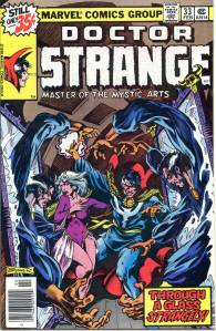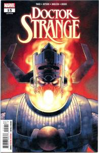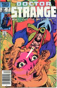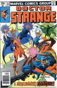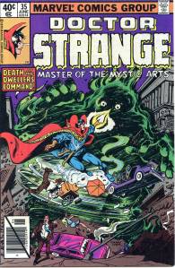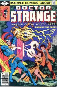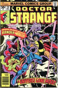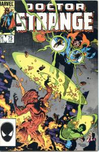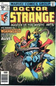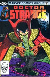 The title became a “split book” with the introduction of sorcerer Doctor Strange, by Lee and artist Steve Ditko. This 9- to 10-page feature debuted in #110 (July 1963), and after an additional story and then skipping two issues returned permanently with #114. Ditko’s surrealistic mystical landscapes and increasingly head-trippy visuals helped make the feature a favorite of college students, according to Lee himself. Eventually, as co-plotter and later sole plotter, in the “Marvel Method“, Ditko would take Strange into ever-more-abstract realms, which yet remained well-grounded thanks to Lee’s reliably humanistic, adventure/soap opera dialog. Adversaries for the new hero included Baron Mordo introduced in issue #111 (Aug. 1963) and Dormammu in issue #126 (Nov. 1964). Clea, who would become a longtime love interest for Doctor Strange, was also introduced in issue #126.