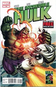 The Incredible Hulk returns as an ongoing series written by acclaimed PLANET HULK and WORLD WAR HULK scribe Greg Pak! Get ready for Bruce Banner as you’ve never seen him, the Son of Hulk in a whole new world of smash, and an insane new adventure that changes everything for everyone’s favorite Green Goliath!
