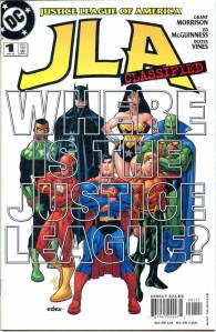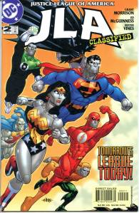This series, in an attempt at a “back-to-basics” approach, used as its core the team’s original and most famous seven members (or their successors): Superman, Batman, Wonder Woman, Aquaman, Flash (Wally West), Green Lantern (Kyle Rayner), and the Martian Manhunter. Additionally, the team received a new headquarters, the “Watchtower“, based on the Moon. JLA quickly became DC’s best-selling title, a position it enjoyed off and on for several years.
