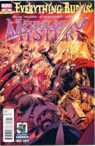 The Thor title resumed its original numbering in 2009 with Thor #600, including the intervening issues of Thor in its count while disregarding the 1990s Journey Into Mystery issues. Starting with issue #622, the series for a second time had its title restored to Journey Into Mystery, which accompanied the launch of a new title, Mighty Thor. Thor’s supporting cast returned as the focus of a run written by Kieron Gillen, who had written Thor from #604 to #614, and drawn by Doug Braithwaite. Starring was the Thor antagonist Loki, who had been reincarnated as a child following his sacrifice in the series Siege. Gillen’s run was favorably reviewed, with one critic writing: