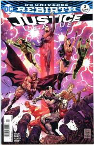Justice League, written by Bryan Hitch and drawn by Tony Daniel and Fernando Pasarin, debuted in June 2016. The team consists of Superman (pre-Flashpoint version), Batman, Wonder Woman, the Flash (Barry Allen), Aquaman, Cyborg, two Green Lanterns, Jessica Cruz and Simon Baz & Mera.