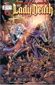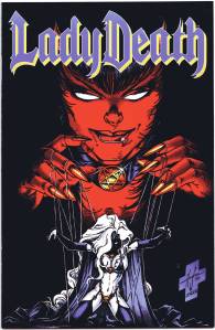Lady Death was originally published by Chaos Comics and remains one of the best examples of the bad girl titles that took the American comic book industry by storm during the late 1990s. The earliest issues of Lady Death were written by Brian Pulido and illustrated by Steven Hughes. Lady Death was originally conceived as a violent anti-hero, but subsequent iterations have toned down the more controversial aspects of the character.
