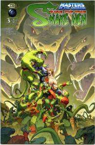 Masters of the Universe: Rise of the Snake Men is a three-issue miniseries originally published by CrossGen in 2003 and 2004. It was written by Val Staples and illustrated by Andie Tong and Jonboy Meyers. Here, King Hsss is freed from his ancient prison and unleashes his army on Eternia.