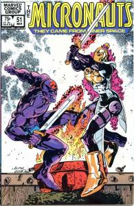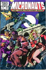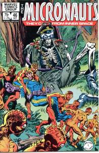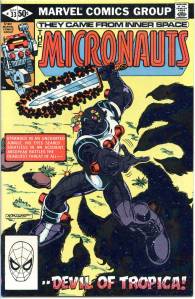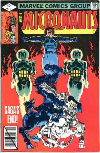 The first series of the Micronauts ran from January 1979 to August 1984 and included 59 issues and two Annuals. The series was written by Bill Mantlo and featured art by Michael Golden. Other artists on the series included Howard Chaykin, Steve Ditko, Rich Buckler, Pat Broderick, Val Mayerik, Keith Giffen, Greg LaRocque, Gil Kane, Luke McDonnell, Mike Vosburg, Butch Guice, and Kelley Jones. Micronauts, along with Moon Knight and Ka-Zar the Savage, became one of Marvel’s first ongoing series to be distributed exclusively to comic book stores beginning with issue #38 (Feb. 1982).