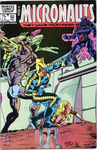 The Micronauts began life as comic book characters thanks to a fortuitous accident on Christmas 1977. Marvel Comics writer Bill Mantlo’s son Adam opened a new present, a line of the Mego Corporation‘s Micronauts action figures. Seeing the toys, Mantlo was instantly struck by inspiration to write their adventures. Convincing then Editor-in-chief Jim Shooter to get the comics license for these toys, Mantlo was hired to script their series.