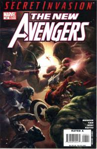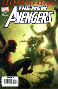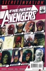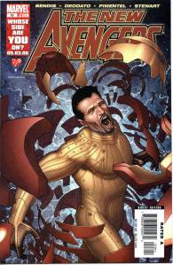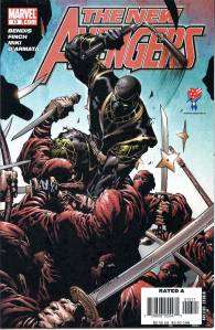 The New Avengers is a spin-off of the long-running Marvel Comics series The Avengers. The first issue, written by Brian Michael Bendis and penciled by David Finch, was dated January 2005 but appeared in November 2004. Finch penciled the first six issues and issues #11-13. Succeeding pencilers with multiple-issue runs include Steve McNiven, Leinil Francis Yu, Billy Tan, and Stuart Immonen. The roster at first comprises Luke Cage, Captain America, Iron Man, Spider-Man and “Spider-Woman” (Veranke). Later stretches included the mutant X-Man Wolverine, the unstable and godlike Sentry, and the deaf ninja Echo, in the guise of Ronin.