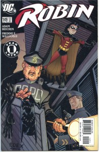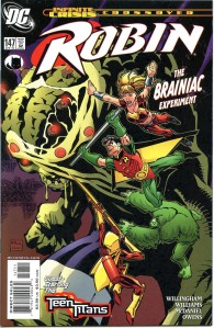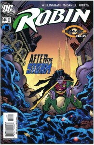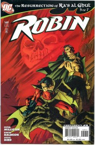 In 1993, the success of the three Robin miniseries led to the ongoing Robin series which ran 183 issues until 2009 and helped his transition from sidekick to a superhero in his own right. In 2004 storylines, established DC Comics character Stephanie Brown became the fourth Robin for a short while before the role reverted to Tim Drake. Batman’s son Damian Wayne then succeeds Drake as Robin in the 2009 story arc “Battle for the Cowl“, until his death in 2013 story. Following the 2011 continuity reboot “The New 52“, Tim Drake is revised as having assumed the title Red Robin out of deference to the deceased Jason Todd; Jason Todd, as he exists today, operates as the Red Hood and has been slowly repairing his relationship with Batman; Dick Grayson is Nightwing, and later fakes his death to become an undercover operative; and Stephanie Brown is introduced anew as Spoiler once again in the pages of Batman Eternal (2014).