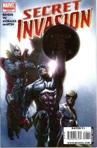 “Secret Invasion” is a crossover storyline that ran through a self-titled eight issue limited series and several tie-in books published by Marvel Comics from April through December 2008.