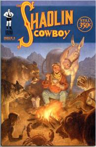 The book is about an unnamed former Shaolin monk who wanders the land with a talking mule named Lord Evelyn Dunkirk Winniferd Esq. the Third. Having been “asked” to leave the Shaolin temple, he has since had a bounty placed on his head, which many are eager to collect. Given the Shaolin Cowboy’s prowess in martial arts, however, this will be very difficult.
