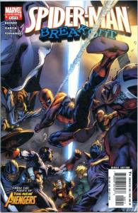 Amazing Spider-Man reverted completely to its original numbering for #500 (Dec. 2003).Mike Deodato, Jr. penciled the series from mid-2004 until 2006. That year Peter Parker revealed his Spider-Man identity on live television in the company-crossover storyline “Civil War“, in which the superhero community is split over whether to conform to the federal government’s new Superhuman Registration Act. This knowledge was erased from the world with the event of the four-part, crossover story arc, “One More Day“, written partially by J. Michael Straczynski and illustrated by Joe Quesada, running through The Amazing Spider-Man #544-545 (Nov.-Dec. 2007), Friendly Neighborhood Spider-Man #24 (Nov. 2007) and The Sensational Spider-Man #41 (Dec. 2007), the final issues of those two titles. Here, the demonMephisto makes a Faustian bargain with Parker and Mary Jane, offering to save Parker’s dying Aunt May if the couple will allow their marriage to have never existed, rewriting that portion of their pasts. This story arc marked the end of Straczynski’s tenure as writer.